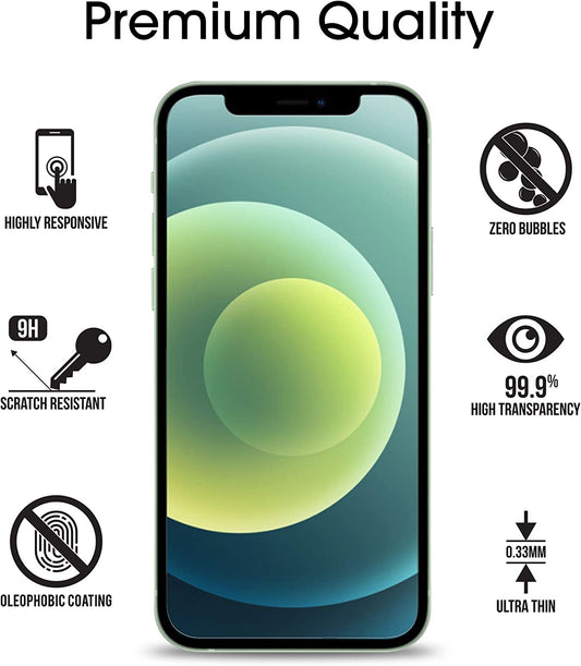 [2-Pack] Installation Frame Screen Protector for iPhone 14 / 13 / 12 2 Pack Protector, Tempered Glass, Case Friendly